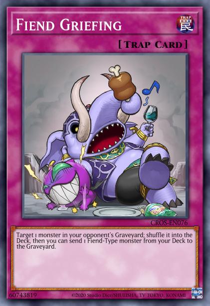 Target 1 monster in your opponent’s Graveyard; shuffle it into the Deck, then you can send 1 Fiend-Type monster from your Deck to the Graveyard.
