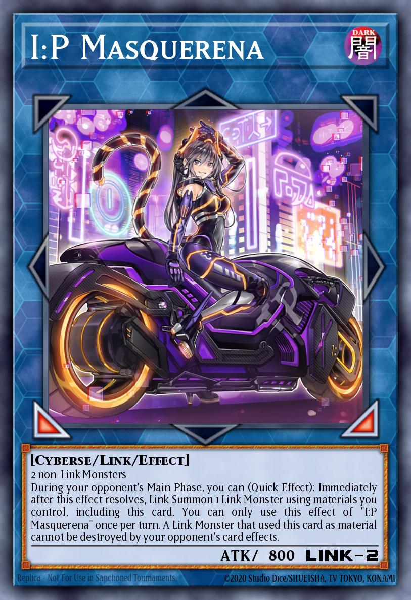During your opponent’s Main Phase, you can (Quick Effect): Immediately after this effect resolves, Link Summon 1 Link Monster using materials you control, including this card. You can only use this effect of “I:P Masquerena” once per turn. A Link Monster that used this card as material cannot be destroyed by your opponent’s card effects.