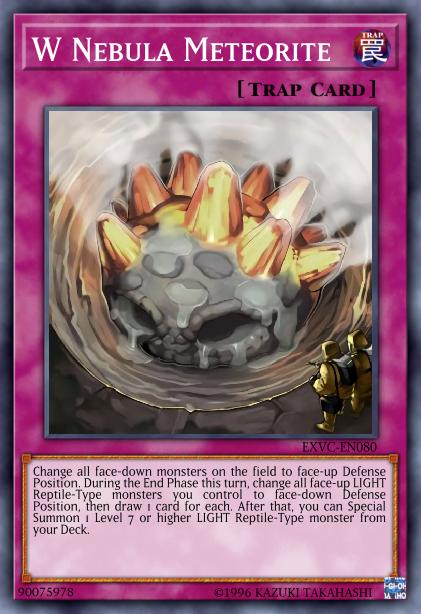 Change all face-down monsters on the field to face-up Defense Position. During the End Phase this turn, change all face-up LIGHT Reptile-Type monsters you control to face-down Defense Position, then draw 1 card for each. After that, you can Special Summon 1 Level 7 or higher LIGHT Reptile-Type monster from your Deck.