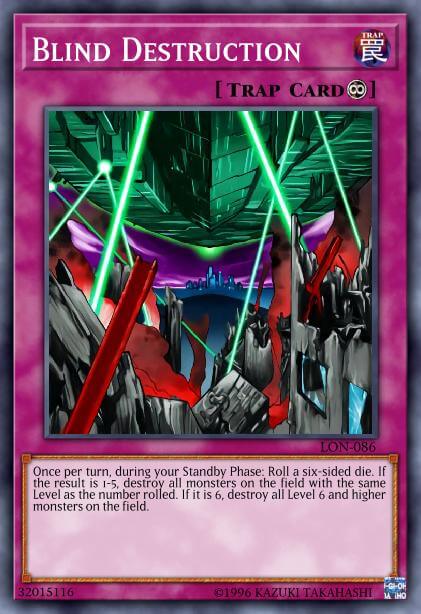 Once per turn, during your Standby Phase: Roll a six-sided die. If the result is 1-5, destroy all monsters on the field with the same Level as the number rolled. If it is 6, destroy all Level 6 and higher monsters on the field.