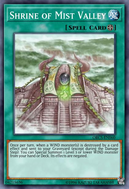 Once per turn, when a WIND monster(s) is destroyed by a card effect and sent to your Graveyard (except during the Damage Step): You can Special Summon 1 Level 3 or lower WIND monster from your hand or Deck. Its effects are negated.