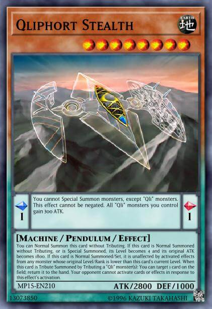 You cannot Special Summon monsters, except “Qli” monsters. This effect cannot be negated. All “Qli” monsters you control gain 300 ATK.r
